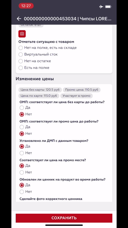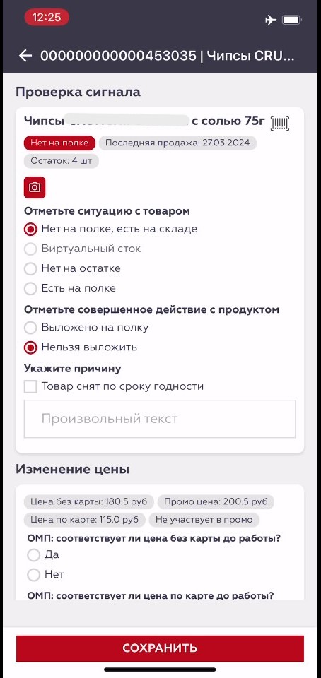 Инструмент для быстрой и точной работы в торговой точке: проверка остатков, ценников, акций и фотоотчет — все в одном интерфейсе. Мерчандайзеру доступны следующие блоки: