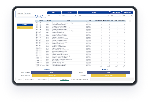 Мощный аналитический модуль — ключ к прозрачности и эффективному управлению. С INSTANT MERCH вся информация о работе в торговых точках доступна в разрезе сигналов, визитов и показателей эффективности, с возможностью глубокой детализации и выгрузки отчетов.